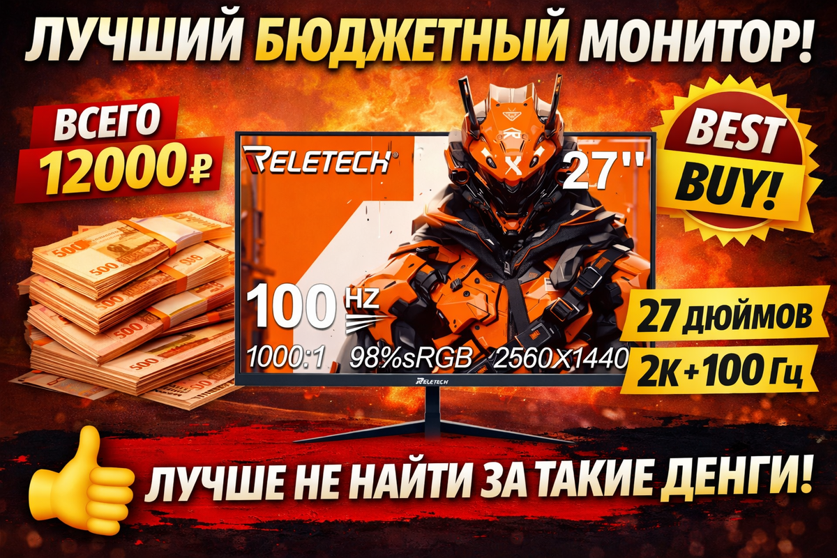 Честно - монитор я менять не собирался. Старый вроде работал, картинку показывал, фильмы шли, игры запускались. Типичная история: пока техника не ломается - руки не доходят до апгрейда. Но в какой-то момент начал замечать, что глаза устают быстрее, окна постоянно не помещаются, а если открыть таблицу и браузер рядом - начинается вечная возня со сворачиванием. Решил посмотреть, что вообще есть сейчас на рынке, и наткнулся на Reletech G27D Air Vision.