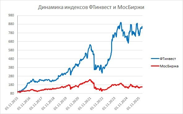 на 1,68% до уровня 2735,35, таким образом альфа нашего портфеля с 1 ноября 2015 составляет 693,92%, а с 1 января 2026 (+2,27% (индекс ФТинвест) – -1,12% (индекс МосБиржи)) = +3,39%.