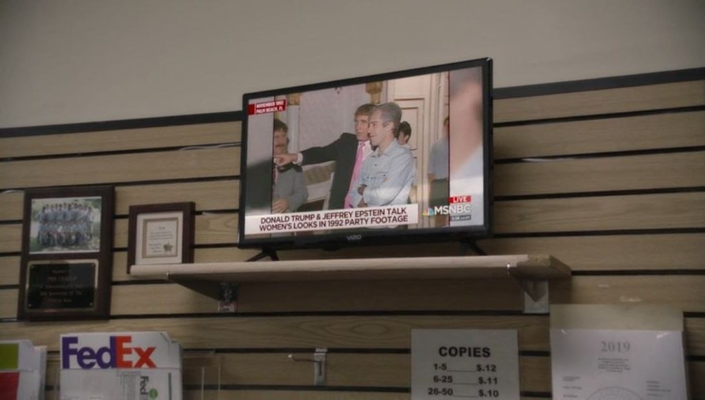 ». В какой-то момент Борат смотрит телевизор и видит там Трампа с Эпштейном, которые оценивают внешний вид девушек.