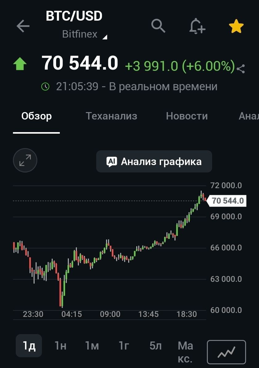 👆👆👆 Что и требовалось доказать я же говорил #BTCUSD 72800 туда и идём. 👆👆👆 Ждём 🤔наблюдаем 🧐 #АНАЛИЗ_ВСЕГО #РЫНКА #КАЖДЫЙ_ДЕНЬ #АКЦИИ #КРИПТА #ВАЛЮТЫ #КУРС #РУБЛЯ #ЮАНЬ_РУБЛЬ #ДОЛЛАР_РУБЛЬ 👇👇👇 ТЕЛЕГРАМ КАНАЛ https://dzen.ru/id/61356a6d5e488b5f67683584