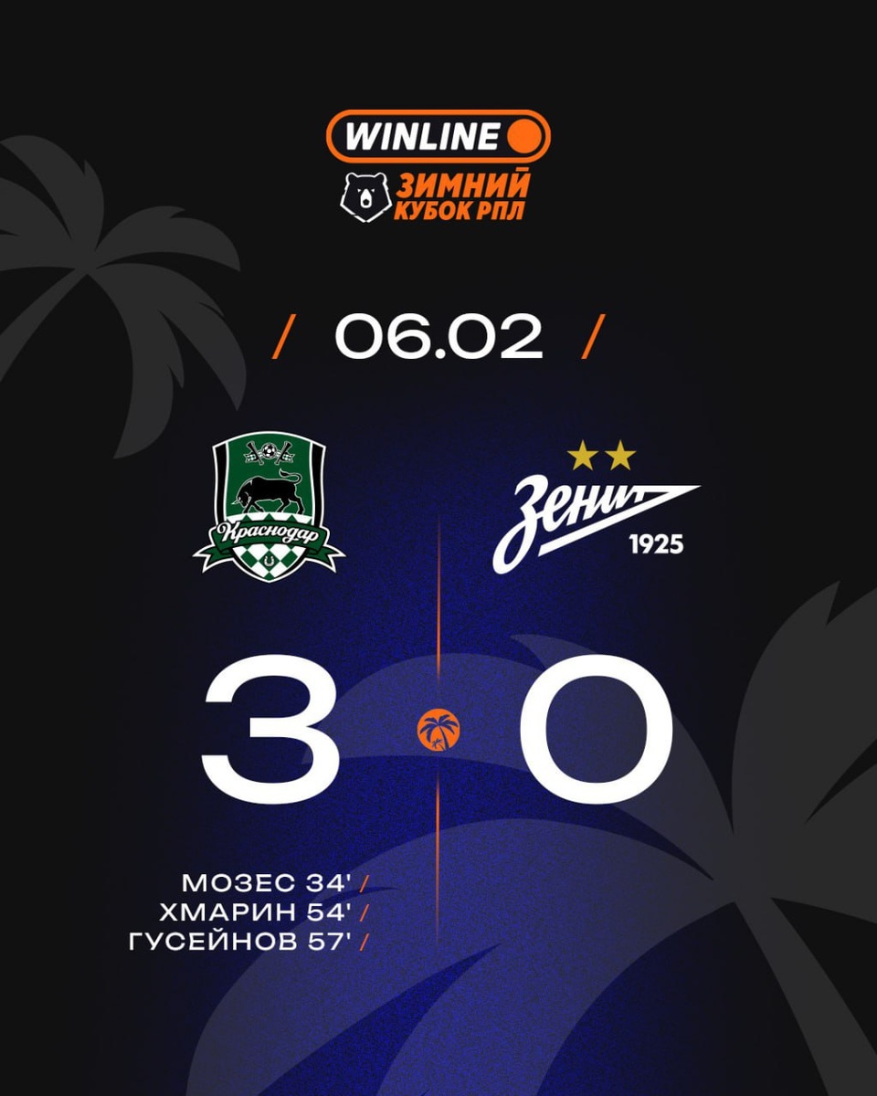 ⚽️⚽️ «Краснодар» разгромил «Зенит» в матче Зимнего кубка РПЛ