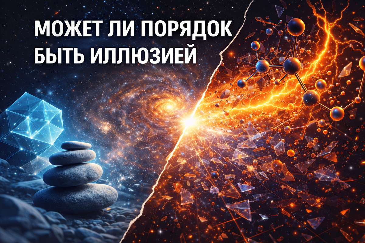 Мы привыкли считать порядок чем-то объективным. Столы стоят ровно, планеты движутся по орбитам, законы физики работают одинаково вчера и сегодня. Кажется, что порядок - фундаментальное свойство реальности. Но чем глубже наука изучает устройство мира, тем чаще возникает тревожный вопрос - а существует ли порядок сам по себе или мы просто научились его видеть там, где есть лишь хаос. Начнем с простого. Порядок всегда определяется наблюдателем. Для человека аккуратная комната - порядок. Для муравья это лабиринт препятствий. Для бактерии на поверхности стола - целая вселенная. Наш мозг эволюционно заточен под поиск закономерностей. Это вопрос выживания. Тот, кто быстрее находил повторяющиеся структуры, лучше предсказывал опасность и находил пищу. Поэтому человек склонен видеть порядок даже там, где его нет. Это называется апофения - склонность находить смысл и структуру в случайных данных. На фундаментальном уровне мир устроен совсем не так упорядоченно, как нам кажется. Атомы не являются