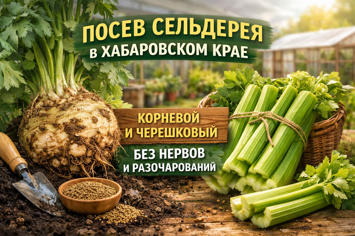 Мы продолжаем серию статей о посевах для Хабаровского края. Ранее мы уже подробно разобрали перцы, баклажаны и лук, и следующим логичным шагом становится сельдерей. Культура, которая у многих вызывает настороженность и сомнения. Его часто считают сложным, капризным и неблагодарным, хотя на деле проблема почти всегда не в растении, а в неправильном старте.