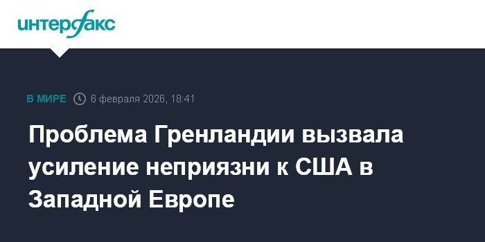 Европа в обиде на США: Бенифей требует уважения, а опросы показывают растущую ненависть FRANCE24 vs INTERFAX про охлаждение отношений ЕС и США из-за Гренландии По версии FRANCE24, евродепутат Брандо Бенифей, главный по связям с США, жалуется на эрозию доверия и оскорбительную риторику в трансатлантических отношениях. Он заявляет, что «Европа должна быть готова к ответным мерам, если хочет, чтобы к ней относились серьёзно», и приводит в пример «твёрдость и решительность» во время истории с Гренландией, которые, якобы, привели к более спокойному диалогу. Бенифей также критикует итальянского премьера Джорджу Мелони за её «очень плохой» подход к Трампу, продиктованный, по его мнению, внутренней политикой, а не национальными интересами. INTERFAX же, ссылаясь на опрос YouGov, сообщает о резком росте неприязни к США в Западной Европе. «Больше всего доля тех, кто недоброжелательно относится к США, в Дании — 84%», далее Германия (72%), а в Испании, Италии, Франции и Великобритании показатель пр