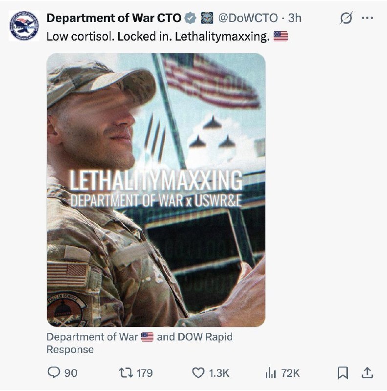 Department of War shares a post about ‘LETHALITYMAXXING’