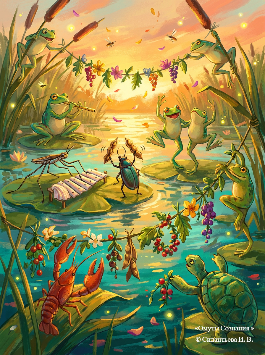 Эпизоды с оркестром, украшением болотца, придумыванием игр стимулируют творческое мышление. Дети видят, что мир можно преображать через фантазию и совместные усилия, а «необычные» ресурсы (травинка, листья, звуки природы) становятся материалами для творчества.