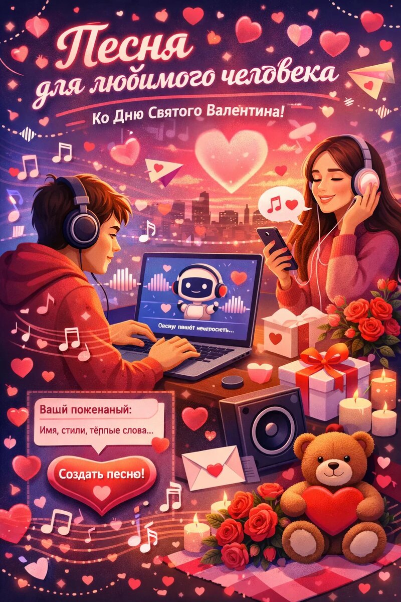 Февраль 2026 года открывает эру, когда искусственный интеллект становится доступным творческим инструментом для каждого. Вместо традиционных конфет или букетов вы можете подарить вашей второй половинке уникальную песню, созданную специально с учётом ваших общих воспоминаний и чувств. Такой подарок обладает особенной ценностью благодаря своей эксклюзивности — никто другой не получит ничего подобного.