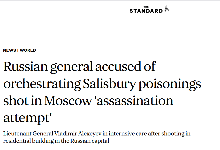 - "Российские телеграм-каналы сообщили, что у генерал-лейтенанта Алексеевa есть враги и внутри России". Интересное замечание от россиян: если бы Украина была замешана, то генерал был бы уже мертв, а не в реанимации.