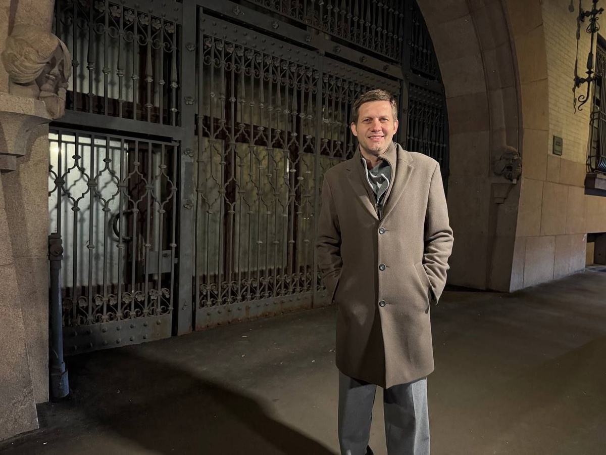 На фасаде этого одного из первых московских небоскребов до сих пор два странных лица.
