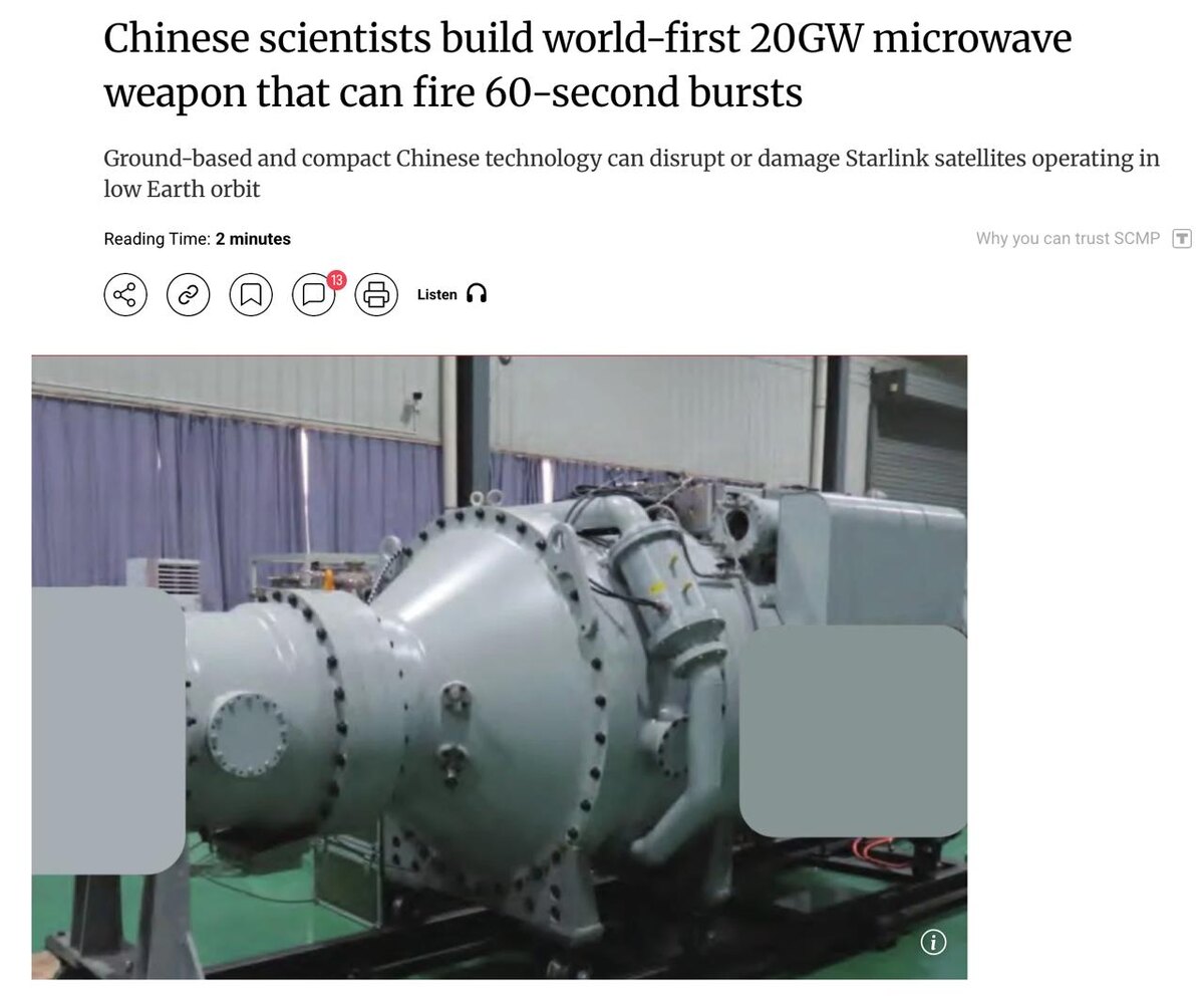 Китай разработал компактное микроволновое оружие для подавления спутников