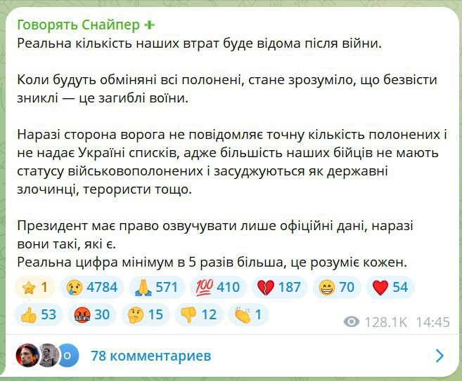 То есть 55 000 * 5 = 275 000. Еще раз, по мнению Станислава Бунятова это МИНИМУМ. Реально, конечно больше. И по его словам это ясно всем. О чем еще говорят эти цифры. Что подавляющее число семей погибших солдат ВСУ не получили (и не получат) денежных компенсаций. Так как их родственники официально не признаны погибшими. И это тоже понятно всем. "Юрий Подоляка" Сальное Дифлопэ