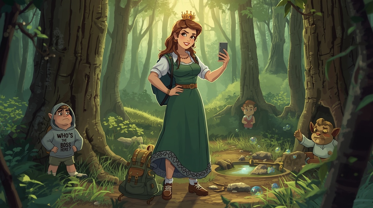 — Пап! — голос её звенел, как уведомление на новом айфоне. — Мы живём в эпоху осознанности! Я — self-made принцесса! Мне не нужен принц, который прискачет на белом коне (углеводородный след!), чтобы «спасти» меня. Меня спасать не надо! Я сама спасу кого угодно! Я пойду и сама найду своё счастье! А ещё я проведу в этом походе ретрит «Женщина и Лес: как найти ресурс в корнях и не сломать каблук».