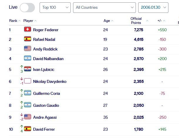 Топ-10 рейтинга ATP, когда Роджер Федерер и Карлос Алькарас выиграли свой 7-й турнир Большого шлема 🎾
