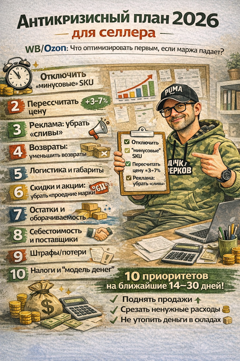 А если хотите быстрее — могу сделать разбор и антикризисный план под ваш кабинет WB/Ozon (с конкретными решениями по цене, рекламе, логистике и ассортимента).