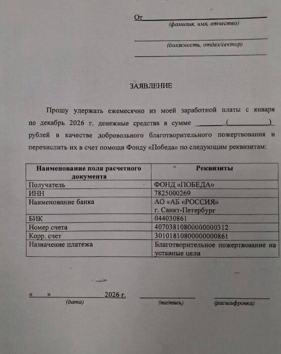 Рубрика: Военное дело Медицинским работникам Санкт-Петербурга предложили перечислять часть своей зарплаты на поддержку специальной военной операции (СВО). По данным СМИ, сотрудникам медицинских учреждений начали раздавать заранее подготовленные заявления для подписи. Рекомендуемые суммы для перечисления составляют не менее 500 рублей в месяц для врачей и 200 рублей для медсестёр. Инициатива носит добровольный характер, однако её реализация вызывает вопросы у части медицинского сообщества. Источники отмечают, что подобные предложения уже обсуждались в других регионах страны, но в Санкт-Петербурге это происходит впервые. Представители медицинских учреждений пока не комментируют ситуацию. На данный момент официального подтверждения от властей или руководства медицинских организаций не поступило. Тем не менее, информация продолжает распространяться среди сотрудников. #Санкт-Петербург #Медицина #СВО #Зарплата #Медработники ➡️ Читать на сайте ➡️ Подписаться на Телеграм