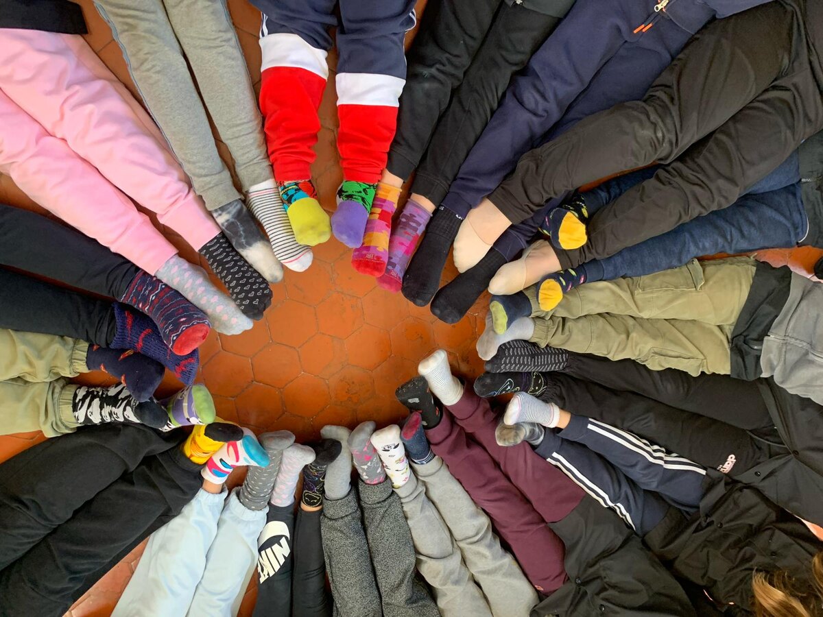 Вы думаете, что это шутка? А вот и нет! Такой день действительно существует и отмечается во многих странах, в том числе в Италии. Уже насколько лет в школах и организациях многих стран проводится день непарных носков, когда все приходят на работу или на учёбу в разноцветных носках для того, чтобы подчеркнуть инклюзивность (это слово в последнее время стало чрезвычайно популярным). Изначально "праздник" непарных носков был придуман в поддержку психического здоровья и "солнечных людей" с синдромом Дауна, а затем его смысл был расширен и распространился в том числе на проблемы буллинга и сосуществования разных в многообразном обществе.