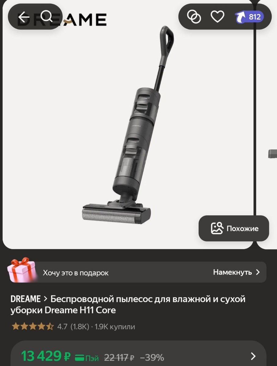 π₯ΠΠ΅ΡΠΏΡΠΎΠ²ΠΎΠ΄Π½ΠΎΠΉ ΠΏΡΠ»Π΅ΡΠΎΡ Π΄Π»Ρ Π²Π»Π°ΠΆΠ½ΠΎΠΉ ΠΈ ΡΡΡ ΠΎΠΉ ΡΠ±ΠΎΡΠΊΠΈ Dreame H11 Core