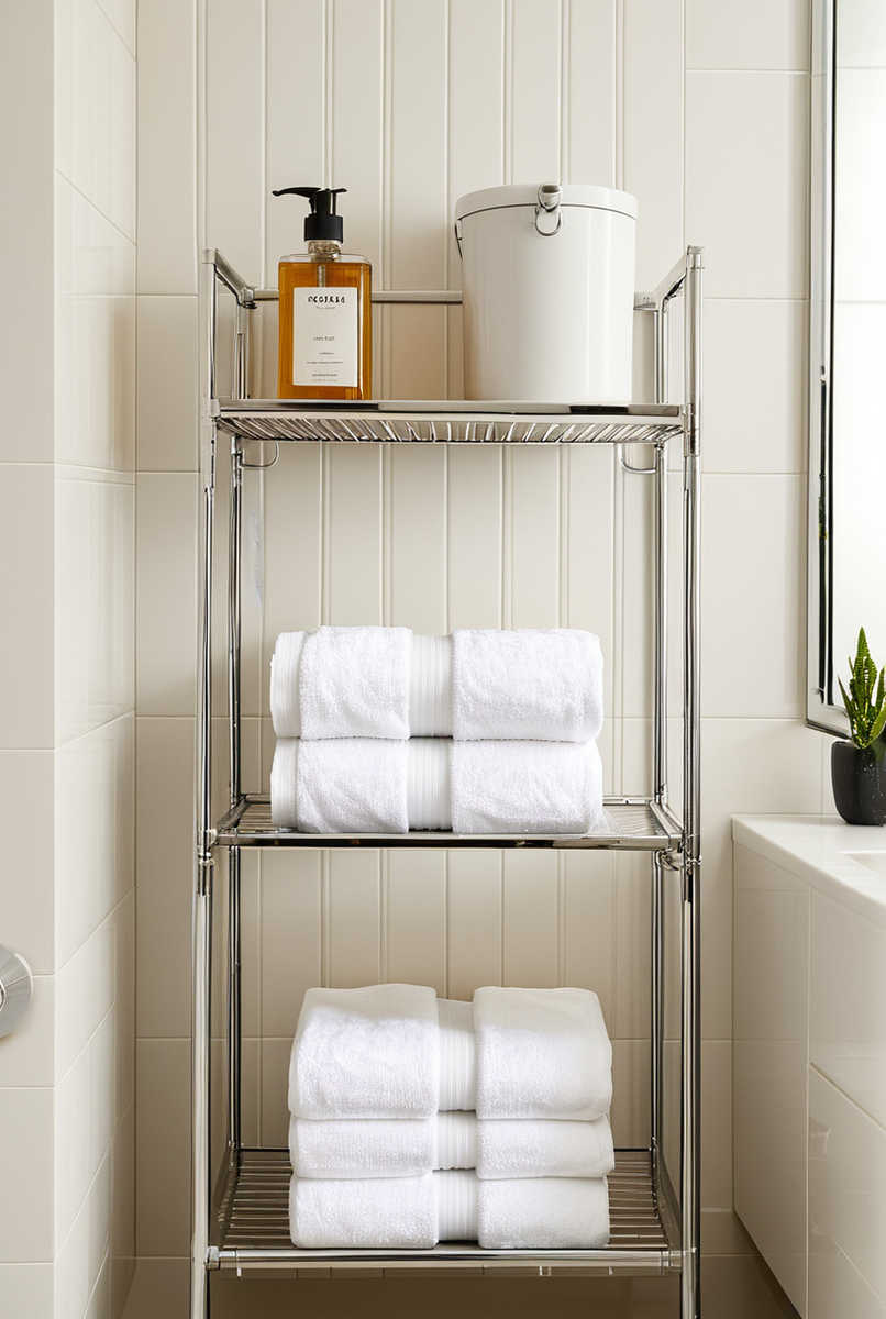 - Средний ярус: для аккуратных стопок мягких полотенец.