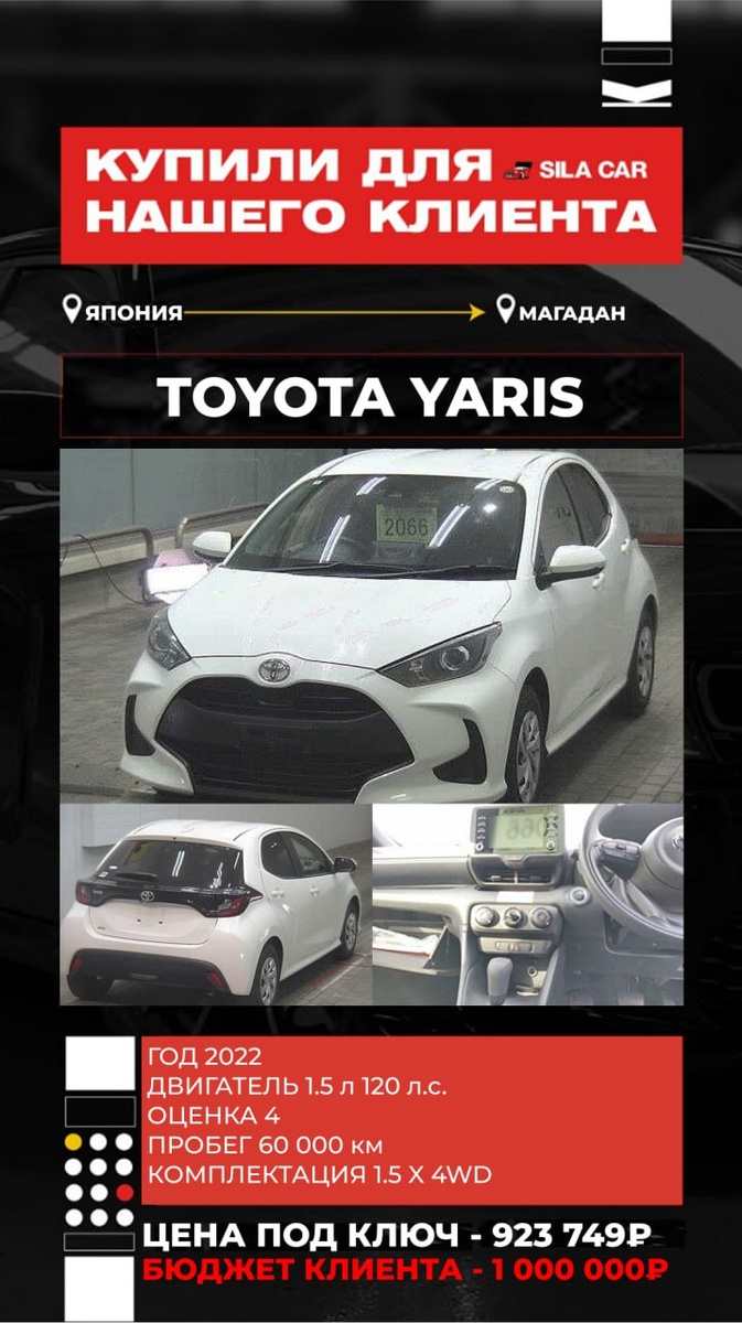 🔥 Никаких скрытых комиссий ❗️️Работаем строго по договору ┏ Реально честная комиссия: ┣ 50 000₽ на авто до 1 млн ₽ ┣ От 1 до 2,5 млн. ₽ - 70.000₽ ┗ От 2,5 млн. ₽ - 100.000₽ САМЫЕ ЧЕСТНЫЕ ЦЕНЫ НА РЫНКЕ ⬇️ Объём двигателя, см3 1500 Цена "на кнопке" ¥915 000 р.484 950,00 Комиссия за дорогую покупку ¥5 000 р.2 650,00 Расходы по Японии ¥77 000 р.40 810,00 Фрахт ¥55 000 р.29 150,00 Итого стоимость по инвойсу ¥1 052 000 557 560,00 ₽ Ставка таможенного платежа р.233 489,99 Тип силовой установки Топливо или параллельный гибрид Суммарная мощность, кВт 0,00 0 л.с. Утилизационный сбор* р.5 200,00 Брокерские услуги, СВХ, погрузо-разгрузочные работы, прохождение лаборатории р.65 000,00 Приёмка и забор автомобиля с СВХ, доставка до лаборатории, доставка до стоянки р.10 000,00 Честная комиссия СИЛА КАР р.50 000,00 НДС на комиссию 5% 2 500,00 ₽ Итого во Владивостоке: 923 749,99 ₽ 🔴Купил менеджер Даниил 📞 +7(908)979-36-95 🔵@SilaCarDAN 👉Для РАСЧЕТА СТОИМОСТИ АВТО