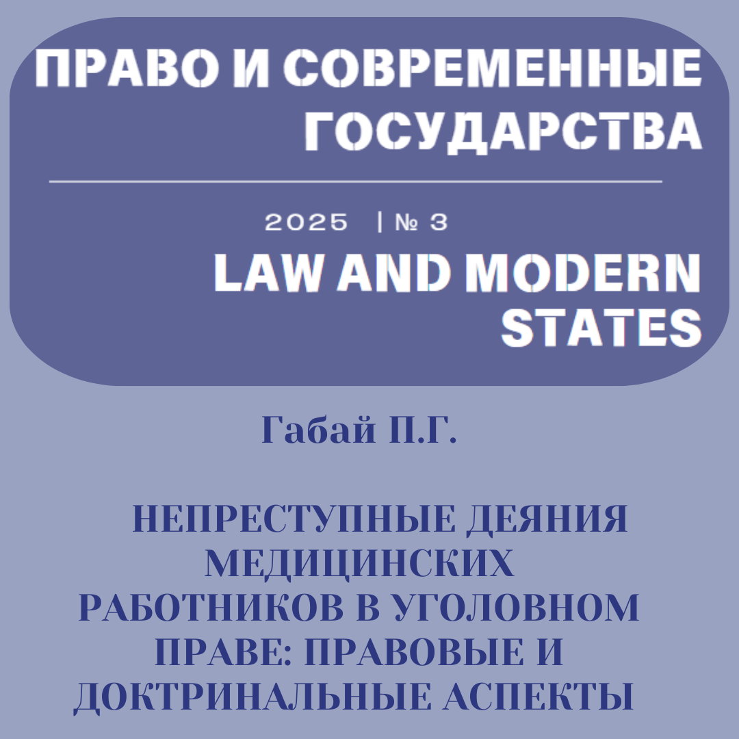 НЕПРЕСТУПНЫЕ ДЕЯНИЯ МЕДИЦИНСКИХ РАБОТНИКОВ В УГОЛОВНОМ ПРАВЕ: ПРАВОВЫЕ И ДОКТРИНАЛЬНЫЕ АСПЕКТЫ, Габай П.Г.