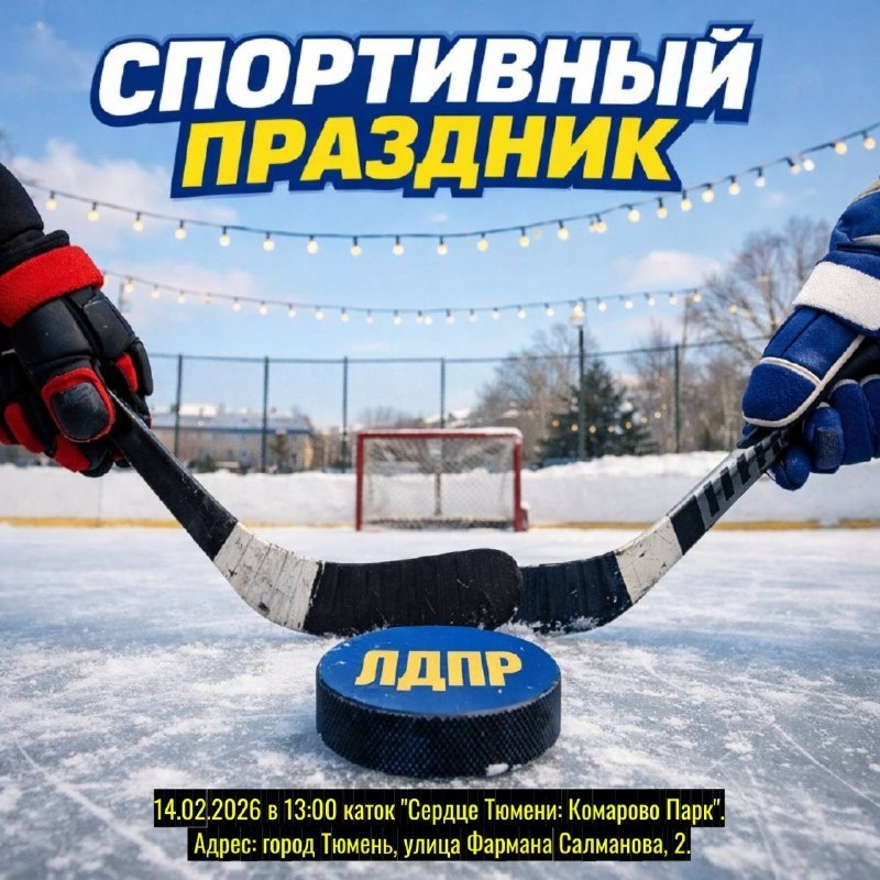 ! Приглашаем всех желающих 14 февраля к 13:00 на каток «Сердце Тюмени» на незабываемый спортивный праздник с ЛДПР при поддержке лиги дворового спорта. Вас ждет захватывающий хоккейный матч, а после массовое катание для всех желающих. Это отличная возможность провести субботний выходной в компании близких и друзей! Для бесплатного прохода на матч просто сообщите, что вы пришли на матч «ЛДПР и лиги дворового спорта». Не забудьте взять с собой коньки для массового катания или приобрести их в прокате. До встречи!