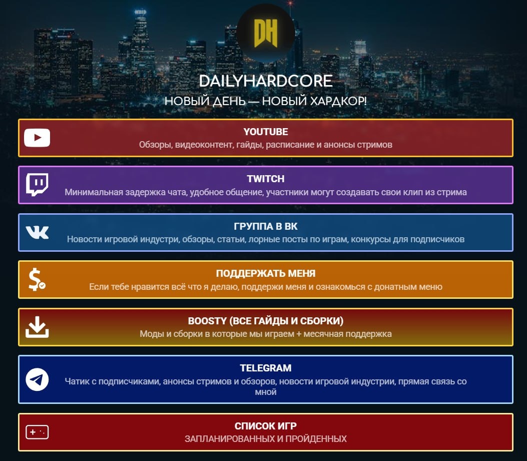 Теперь вы не заблудитесь, а те кто еще не посмотрел всё что у нас есть кроме стримов и группы, может зайти по этой ссылке и ознакомиться со всем контентом! Пользуемся на здоровье! Так же спасибо Константину за финансовую поддержку, пока делал пост и переделывал для вас ссылки чтобы всё было удобнее, Константин прислал нам донат.) Костя спасибо! Dailyhardcore Подписаться