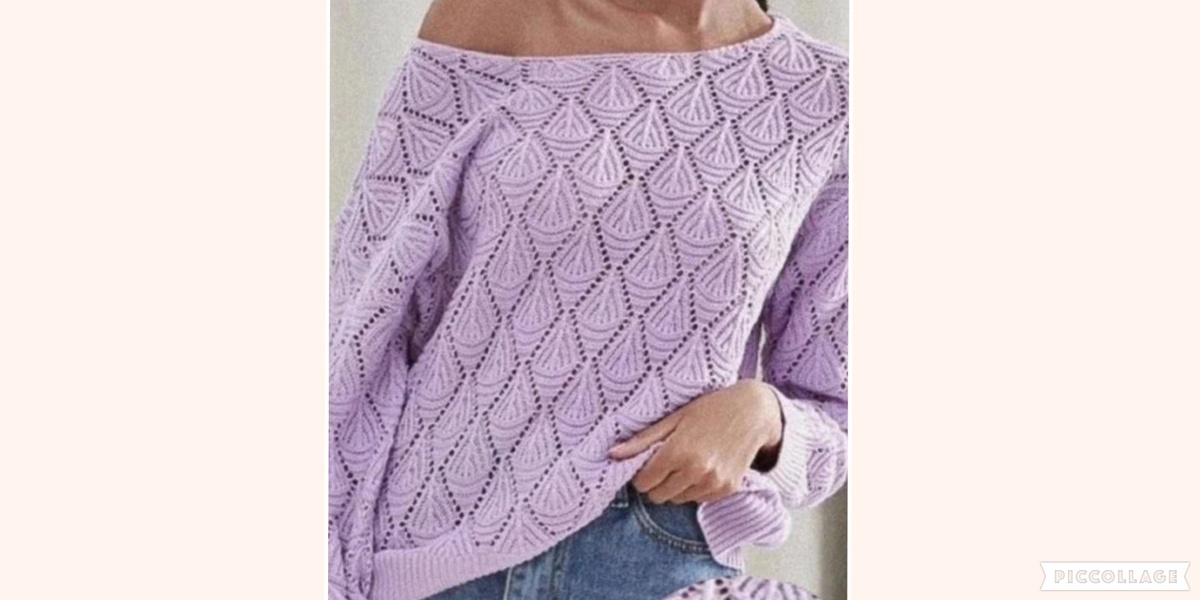 1. Ромбы ажурные из лицевых и изнаночных петель.. Легко вяжется поворотными рядами и по кругу.. Ссылка на видео такого узора : 2. Простой очаровательный узор на футболке - поло.. Понравились модели с таким узором из интернета.. Футболка - поло в два цвета... Вдохновилась и связала джемпер из мерсеризованного хлопка! Фотографии моего джемпера. Мой джемпер с круглой горловиной. Пряжа от Ярн Арт мерсеризованный 100% хлопок. Джемпер на 48 размер свободный, спущенные плечевые швы.. Круглая горловина связана лицевыми петлями, которая закручивается руликом. Так выглядит плечевой шов.. Мое изделие с таким ажурным узором просвечивает, конечно, необходимо надевать на водолазку, топ или майку.. Можно носить как с брюками, так и с юбками.. Если кому интересно пишите, подробно опишу как вязала, сколько набирала из какой пряжи.. Ссылка на видео такого узора : 3. Простой красивый узор для свитера и не только.. Изделия связаны, конечно, на машинке, но легко можно связать и руками на с