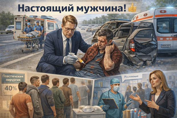 О чем только не думают нынешние мужчины, пока женщины, детей рожают и мир спасают. Одни, как министр здравоохранения Михаил Мурашко, демонстрируют героическое самообладание и медицинские навыки, останавливаясь на Минском шоссе, чтобы помочь пострадавшему в ДТП. Ехал на работу по Минскому шоссе, заметив на обочине аварию, остановился и оказал помощь раненому водителю. Не только вызвал СМП, но и обезболил, и сопроводил «скорую» до больницы. Прямо как в старых добрых фильмах: благородный герой, карета скорой помощи, благодарный пациент. Вот это, настоящий пример! Не каждый, будучи врачом, решится на «внештатную» помощь, рискуя нарваться на неприятности. Даже с врачебным дипломом не осмелился бы, вспомнив про отсутствие аккредитации по скоропомощной специальности и возможные недобрые вопросы следователя. Запугали врачей. Но наш министр – исключение. Министра за медицинскую помощь «вне рамок специальности» не привлекут, а, наоборот, возведут в ранг «настоящего мужчины». Ну, и «огромный лайк