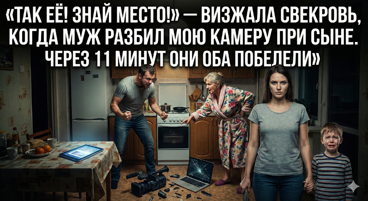 — Какого развода? — Дима сделал шаг вперёд, его лицо начало наливаться багровым цветом. — Ты никуда не пойдёшь. Ты жена. Твоё место здесь. Я вообще ничего не ломал, ты сама ноутбук уронила, когда истерику закатила. А камера... она сама со штатива съехала. Я просто стоял рядом! Ты всё выдумала, чтобы оправдать свой побег к хахалю!