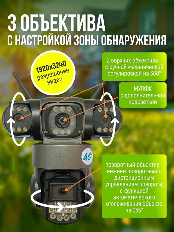 В современном мире безопасность вашего дома — это первоочередная задача. Предлагаем вам идеальное решение для наблюдения за вашей собственностью: видеокамера с 3 объективами и солнечной батареей. Эта инновационная камера сочетает в себе надежность, высокое качество видео и удобство, что делает ее незаменимым помощником в обеспечении безопасности вашего дома.