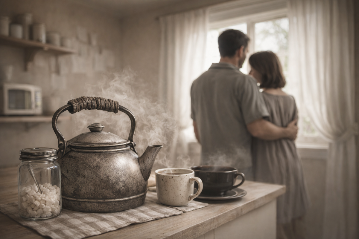Я подошла и поцеловала его в щёку. В комнате было тепло, пахло чаем и чем-то спокойным. Старый чайник стоял на полке, новый — на плите, а я вдруг ясно поняла: бедность не сделала нас несчастными. Она просто научила ценить простые вещи и не разучиться смеяться.