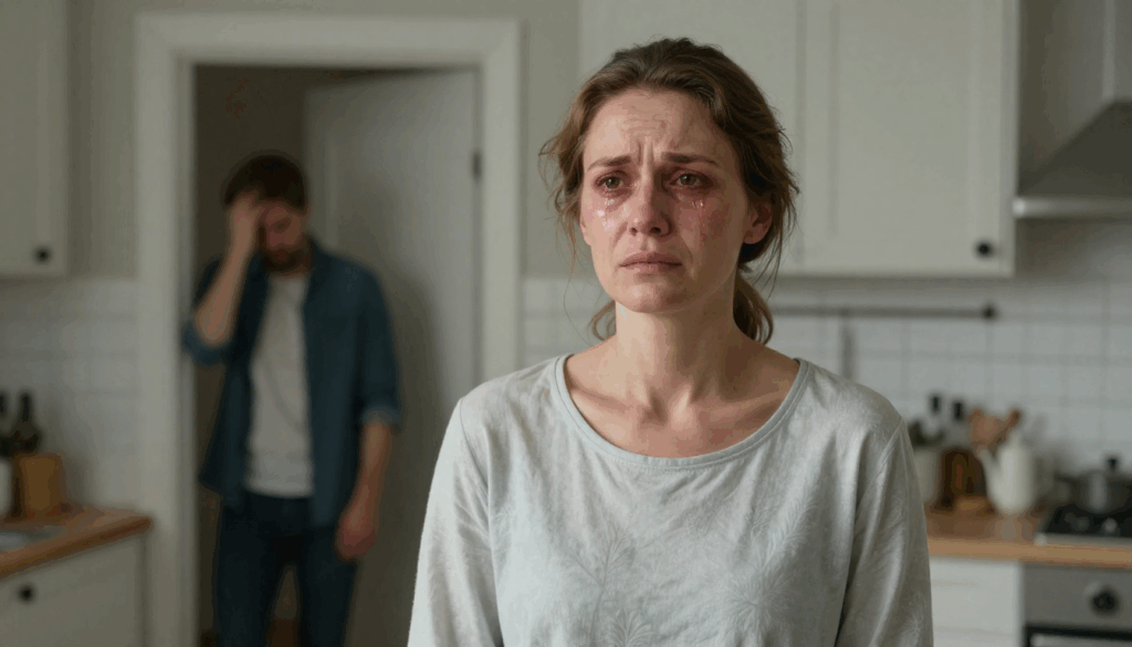 Марина стояла у раковины и смотрела на грязную тарелку. Вода текла тонкой струйкой, но она не замечала этого. Плечи сами собой поднялись к ушам, будто защищаясь от невидимого удара.