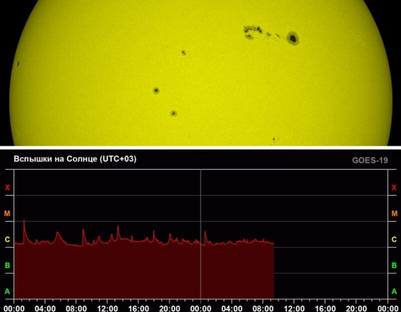 Один из самых мощных всплесков солнечной активности в XXI веке неожиданно завершился. Как сообщили в лаборатории солнечной астрономии Института космических исследований РАН, активная область 4366, расположенная напротив Земли, резко прекратила выбрасывать вспышки, хотя ещё недавно била рекорды по их количеству. 4 и 5 февраля здесь было зафиксировано по 11 вспышек уровней M и X. Однако уже 6 февраля активность упала до нуля, а с началом выходных график солнечной активности практически выровнялся. Словно кто-то дернул рубильник, — описали происходящее ученые. Загадкой остается и то, почему даже самые крупные вспышки не привели к сильным магнитным бурям на Земле. Ожидаемые «черные лебеди» — выбросы плазмы, способные вызвать серьезные геомагнитные возмущения, — так и не появились. Предполагается, что конфигурация активного региона оказалась «стерильной» — несмотря на силу вспышек, они не сопровождались характерными выбросами корональной массы. Это и могло смягчить воздействие на магнитное