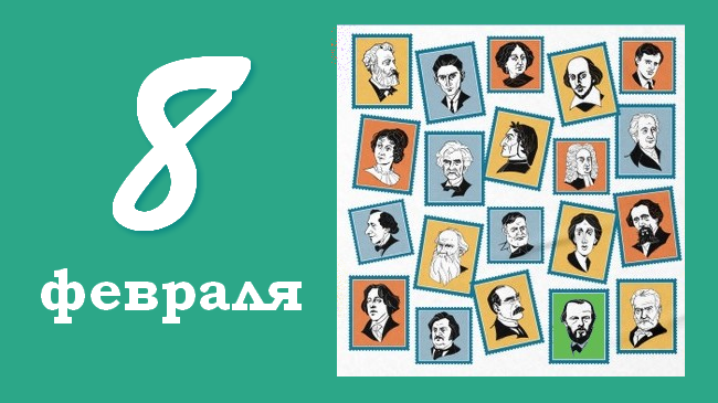 8 февраля 1837 года в дуэли на Чёрной речке смертельно ранен Александр Сергеевич Пушкин 115 лет со дня рождения американской поэтессы Элизабет Бишоп (Elizabeth Bishop, 1911-1979), лауреат Пулитцеровской премии 1956 года 105 лет со дня рождения русского поэта и переводчика Льва Савельевича Друскина (1921-1990) 105 лет со дня рождения белорусского писателя Ивана Павловича Мележа (1921-1976) 100 лет со дня рождения американского писателя Нила Кэссиди (Neal Cassady; 1926-1968) 95 лет со дня рождения российского писателя Бориса Николаевича Сергуненкова (1931) 80 лет со дня рождения австрийского писателя Герта Йонке (Gert Jonke, 1946-2009) 65 лет со дня рождения российского писателя Никиты Александровича Филатова (1961) 60 лет со дня рождения российского поэта Алексея Дмитриевича Ахматова (1966) 20 лет со дня смерти английского писателя Майкла Гилберта (Michael Francis Gilbert, 1912-2006) 5 лет со дня смерти французского писателя Жана-Клода Каррьера (Jean-Claude Carrière, 1931-2021) англий