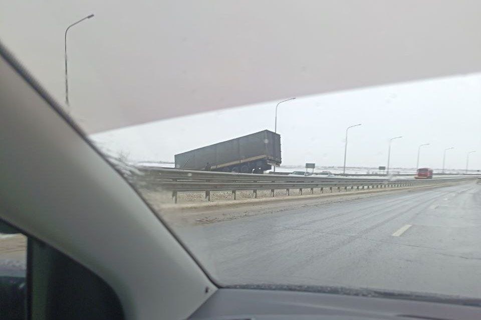 ❗Очевидцы сообщают о серьёзной аварии на въезде в Азов. Фура слетела в кювет.