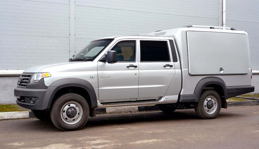 Подмосковная компания «Евраком» представила бронеавтомобиль на базе коммерческой модели «УАЗ Профи», сообщает канал «Грузовики и вообще». Снаружи «броневик» почти не отличается от обычного «УАЗа Профи»: машина построена по технологии скрытого бронирования. Как заявляет производитель, модель защищена по классу Бр3. Это значит, она способна выдерживать обстрел из автоматов АК-74 и АКМ пулями со стальным нетермоупрочнённым сердечником. Бронированию, включая защиту пола и потолка, подверглась двухрядная кабина. Естественно, вместо обычных здесь установлены пулестойкие стёкла. Также автомобиль получил усиленные дверные петли, защиту подкапотного пространства и систему пожаротушения моторного отсека. Грузовой отсек объёмом 2,4 кубометра изготовлен из композитных материалов и имеет три подъёмные дверцы. Эта часть машины осталась небронированной. Техника здесь стандартная: бензиновый мотор мощностью 150 л. с., механическая коробка передач, подключаемый полный привод. Однако масса бронеавтомоби