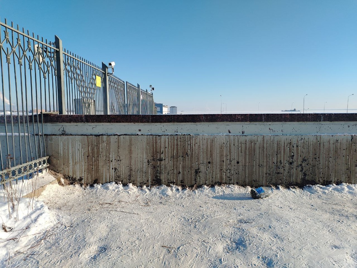 Парапет на южной дамбе у забора залили маслом. Будьте бдительны.