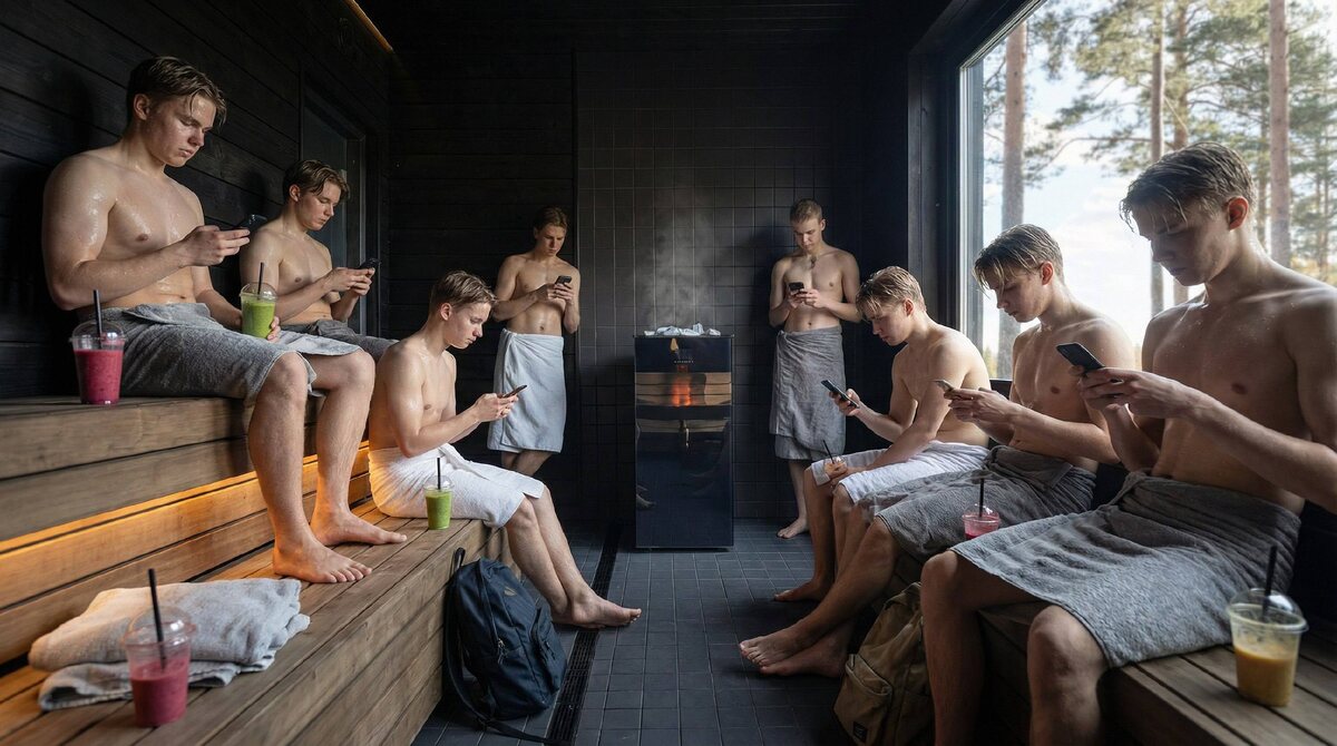 Сегодня суббота. Банный день. СПАшный, по новому стилю. Но этот пост я пишу в пятницу. В отеле есть спа-комплекс. Включен в стоимость. Там и русская, и финские сауны, хамам, соляная комната, арома-сауна. Решил пойти посмотреть, что это такое. Заодно ноги после бега расслабить. Большое, просторное помещение. Метров 300. Вентиляция в коридорах, в душевых. В парных - нет конечно. Пар же выйдет. У каждой парной ахтунг-табличка о полном запрете на поливание каменьев водой. Но стоит ведро с водой и ковшиком. Заглянув по очереди во все помещения, выбрал русскую парную. Только в ней температура была выше, чем температура капучино, который мне делают зумеры в кофейнях. Погорячее делай, чтобы руку тебе жгло, девушка. Я татарин, я не пью жидкости температуры крови онигири. Печка харавия, электричка. На табличке написано, что в русской 80, а в финской 60. Попутали, подумал я. Но это не удивительно. Для них что русская, что финская - барыбер. Барыбер - это без разницы (по-татарски), а то, к