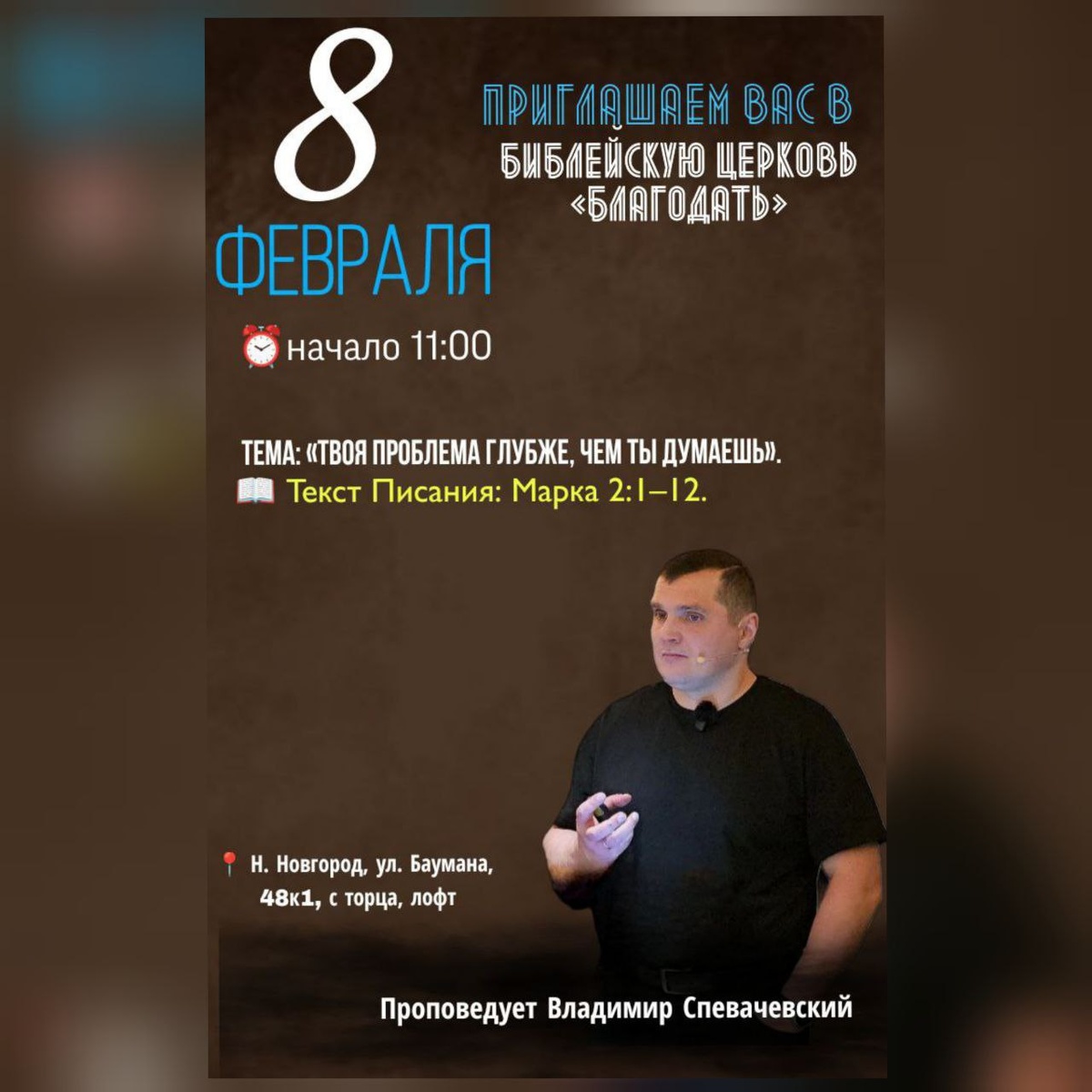 Здоровье. Деньги. Отношения. Спокойствие. Но что, если главная проблема — глубже, чем кажется? В это воскресенье будем честно говорить о жизни, боли, вере и о Христе, Который не просто помогает справиться с трудностями, а меняет человека целиком. Без пафоса. Без религиозных масок. С открытой Библией и живыми вопросами. 🕚 Воскресенье, 11:00 📖 Текст Писания: Марка 2:1–12 📍 Нижний Новгород, ул. Баумана 48к1, с торца, лофт 🏷 Библейская Церковь «Благодать». "Твёрдое основание и мягкое сердце".