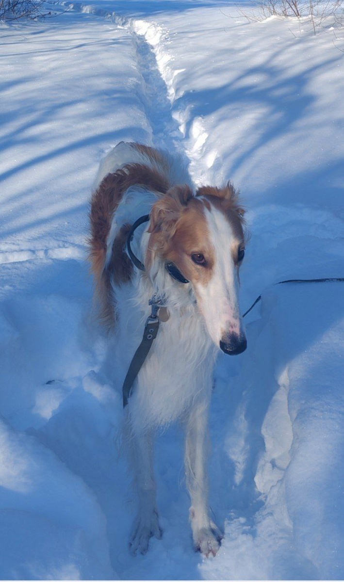 Солнце играло на снегу, а воздух звенел от мороза. Идеальный день для того, чтобы влюбиться. Так и случилось. Нам суждено было встретиться на узкой тропинке заснеженного парка. 🩵 Передо мной был настоящий аристократ: ухоженный, спокойный, уверенный. Взгляд — пронзительный, полный достоинства. Я не могла отвести от него глаз и не удержалась, чтобы не сказать вслух: «Какой красавец!» Его спутнице это понравилось, и она с радостью стала рассказывать о его характере: «Он обожает, когда им восхищаются, но фамильярностей не терпит.» «Прямо как некоторые люди», — промелькнуло у меня в голове. 🫠 Я была настолько очарована, что без лишних церемоний потянулась погладить его по голове. Словно меня и не предупреждали. Ответ был молниеносным и элегантным — вежливый, но недвусмысленный оскал: «Сударыня, мы еще не представлены.» Дама подсказала секрет: «Присядьте немного. И протяните руку ладонью вверх, дав ему выбор.» Я опустилась, открыла ладонь... и случилось чудо. Лед тронулся. Гордый аристокра