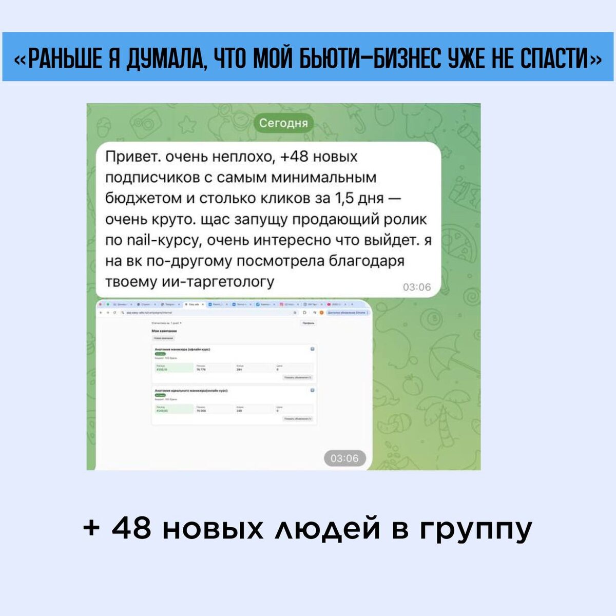 Раньше казалось, что бьюти-бизнес в VK уже не спасти - пишет наша клиентка