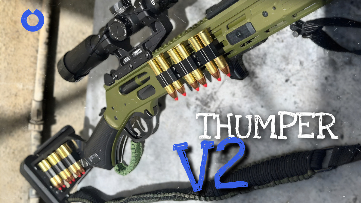 Когда видишь Thumper V2, сразу понятно: это не ностальгический сувенир и не попытка спорить с полуавтоматами. Это осознанный апгрейд классики. Кастом от Mad Pig Customs, построенный вокруг старого доброго lever-action под серьёзный патрон .45-70 — мощный, крупный, честный. Рычажный механизм здесь тот самый, знакомый каждому, кто видел Winchester 1873, Marlin или Henry. Опускаешь рычаг — затвор открывается, гильза уходит. Возвращаешь рычаг — патрон досылается в патронник. Гениально. Для своего времени это была революция по скорострельности, а главное — по надёжности. И, что важно, эта философия никуда не делась. Это модернизированная винтовка с 42 см стволом, усиленным дульным тормозом/компенсатором и переработанной механикой. Калибр .45-70 здесь раскрывается полностью: отдача контролируемая, но уважения требует. Оружие компактное, злое и очень тактильное — его буквально чувствуешь в работе. Здесь не просто «прикрутили тактику». Переработан рычаг — ход стал заметно плавнее, темп стрел