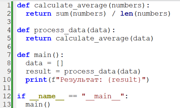 Трассировка стека (traceback) — это один из самых важных инструментов отладки в Python. Когда возникает исключение, интерпретатор Python предоставляет подробный отчет о том, где и почему произошла ошибка. Понимание структуры и информации в traceback — ключевой навык для эффективной разработки на Python. Traceback — это отчет о последовательности вызовов функций, которые привели к возникновению исключения. Он показывает "след" выполнения программы, позволяя разработчику проследить путь ошибки от точки возникновения до верхнего уровня стека вызовов. Рассмотрим типичный пример traceback: При выполнении этого кода мы получим: Traceback (most recent call last): File "example.py", line 12, in <module> main() File "example.py", line 9, in main result = process_data(data) File "example.py", line 5, in process_data return calculate_average(data) File "example.py", line 2, in calculate_average return sum(numbers) / len(numbers) ZeroDivisionError: division by zero Здесь нам сообщают, в каком прог