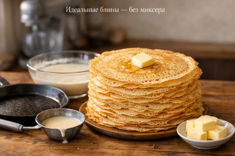 Вот вам парадокс: у наших бабушек не было ни миксеров, ни блендеров, ни кухонных комбайнов. У них была деревянная ложка, миска с отбитой эмалью и руки, которые знали тесто на ощупь. И блины у них получались потрясающие.