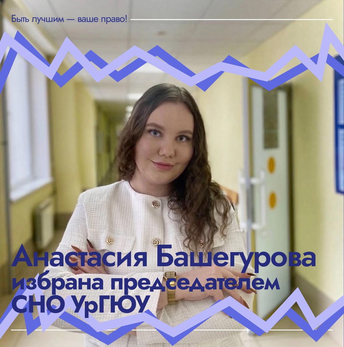 ! Студентка Института права и предпринимательства Анастасия Башегурова избрана председателем Студенческого научного общества УрГЮУ имени В.Ф. Яковлева! 6 февраля прошла отчётно-выборная конференция СНО, на которой делегаты от кафедр и институтов выбрали нового лидера. Анастасия одержала победу, набрав абсолютное большинство голосов. Желаем Анастасии ярких идей, успешных проектов и вдохновения в научной деятельности! Вперёд к новым достижениям! 🎓✨