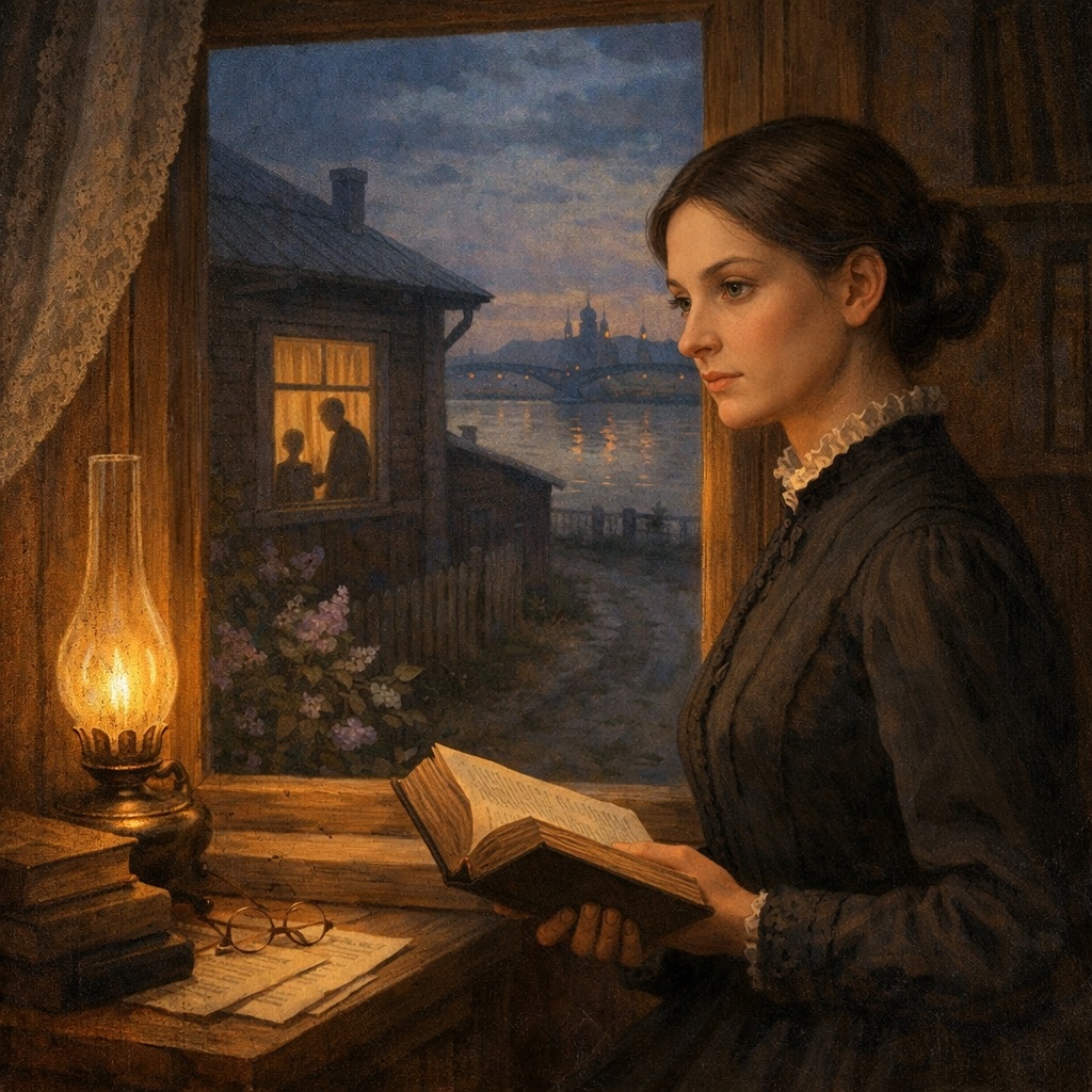 Внешне её жизнь протекала без волнений: скромный дом в Затьмачье, три комнаты с потемневшей мебелью, книги на полках, аккуратно уложенные и словно ожидавшие, когда их прочтут, размеренные уроки словесности и французского языка, вечерние письма и конспекты.