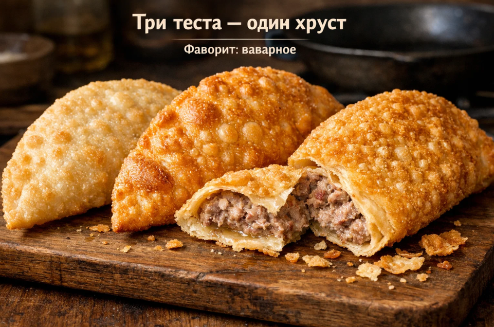 Чебуреки — это та самая еда, которая способна моментально перенести тебя в детство. Помню, как бабушка жарила их на огромной чугунной сковороде, а я стояла рядом и ждала, пока первый румяный полумесяц окажется на моей тарелке. Сок тёк по рукам, тесто хрустело так, что было слышно в соседней комнате, а начинка обжигала язык. И вот спустя годы я до сих пор гоняюсь за тем самым хрустом. За тем ощущением, когда откусываешь кусок, а корочка с характерным треском поддаётся зубам. И знаете что? Я наконец-то решила провести честный эксперимент. Без предвзятости, без заранее выбранных фаворитов. Три вида теста. Одна начинка. Одна сковорода. Одно масло. И мой голодный муж в роли второго дегустатора, потому что собственному языку я не всегда доверяю.