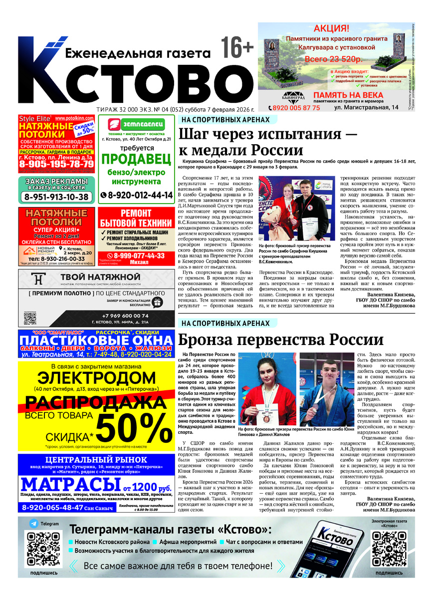 Газета "Кстово" №52 от 07.02.2026 г.