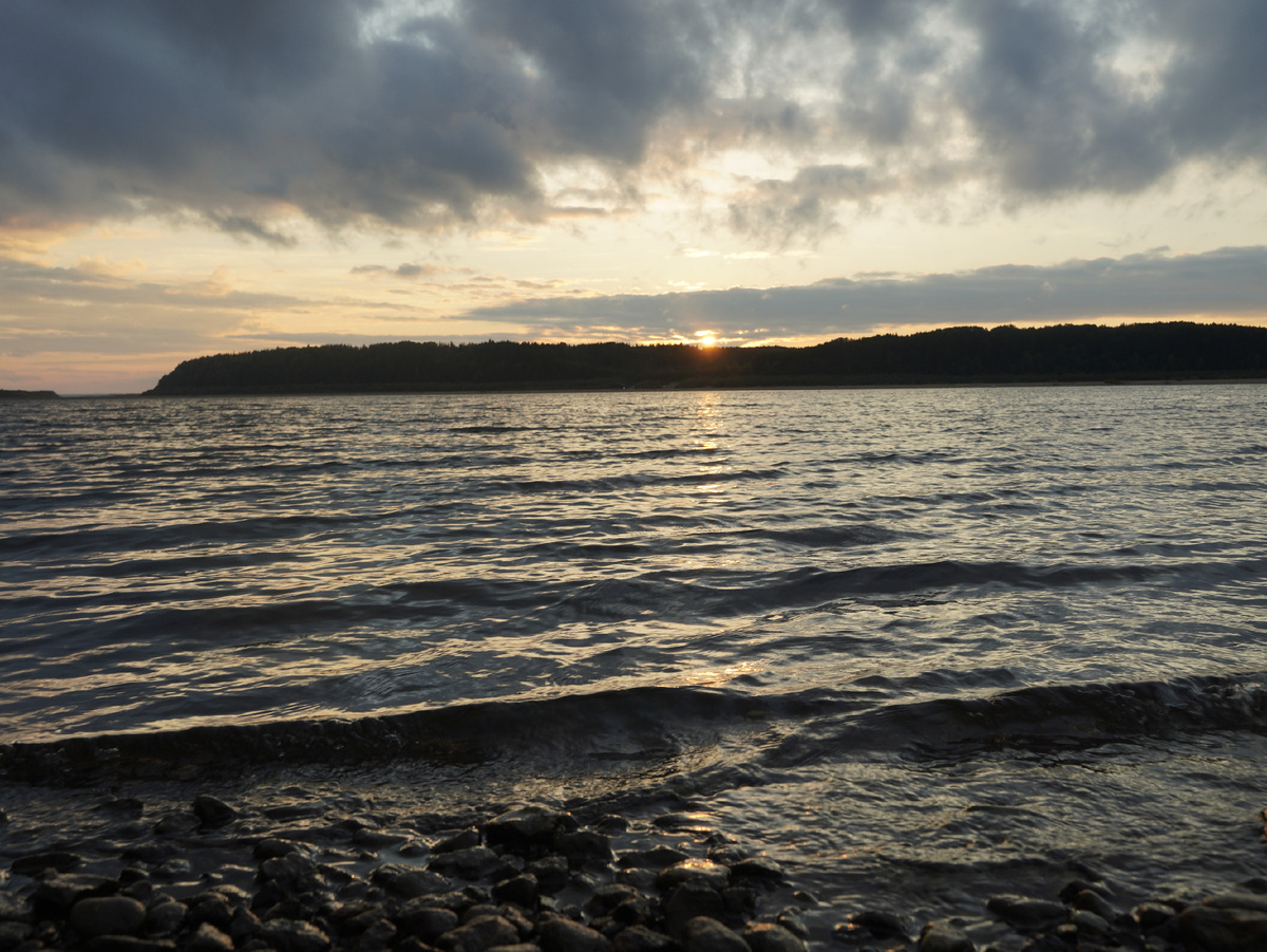 Прекрасные закаты Северной Двины — это отдельная история. Нельзя было пройти мимо возможности прокатиться на пароме, даже если можно было и не ехать. Зачем возвращаться тем же путём? Поэтому из Холмогор я решила переправиться паромом до Усть‑Пинеги, а затем на развилке у Белогорского повернуть в сторону Архангельска.