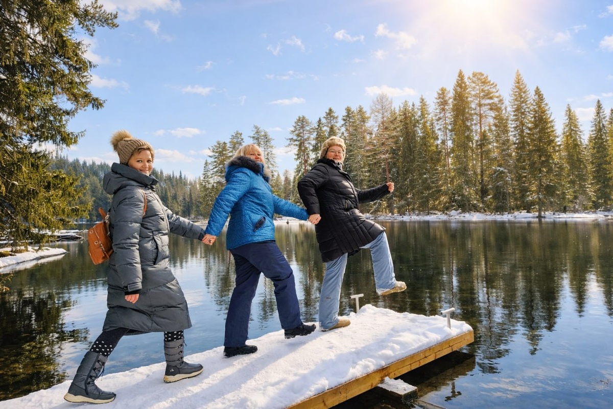 ! Недалеко, по нашей Кировской области. Примерно в 130 км от города есть озеро под названием Теплое. Воистину зимой это так. Ибо температура тут +4 градуса круглогодично и зимой оно не замерзает . Правда, летом-то тут водичка тоже только +4 градуса, что на фоне жары особенно впечатляет. Но это уже нюансы. Мы-то едем сейчас, а не летом. И зимой, особенно в мороз - я видела чужие фото - все деревья увешаны снежной бахромой. А от озера поднимается пар-туман. И потому все кажется очень-очень сказочным. Я возила прошлой зимой на озеро Теплое группу на авто. Съездили-то мы чудесно и очень весело, но лес вокруг был все-таки не белый, а зеленый. Вон, на фото видно. Два раза уже зимой была на этом озере, но ни разу мне еще не довелось посмотреть тут деревья в снежном кружеве. Но нынче зима снегопады щедрая. И если не иней, то хоть опушка-то белая на зелени елей и сосен должна же быть. Вот собираюсь выезжать и гадаю - удастся мне нынче посмотреть белые деревья или нет?